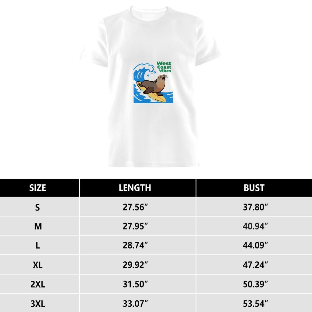 West Coast Seal Printed Men's Pure Cotton T-shirt - Casual Round Neck, Slightly Elastic, Suitable For Summer Knitted Fabric, Classic Fit Adult Shirt, Couple's Shirt