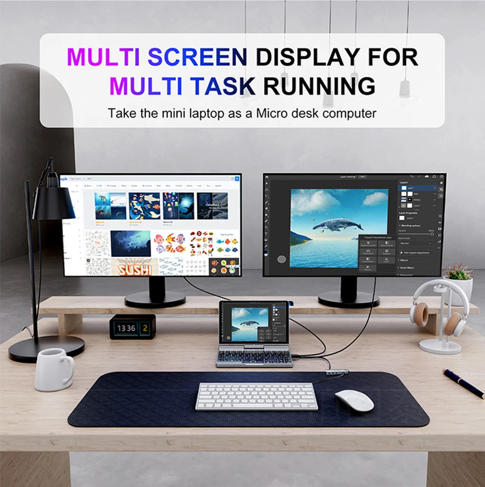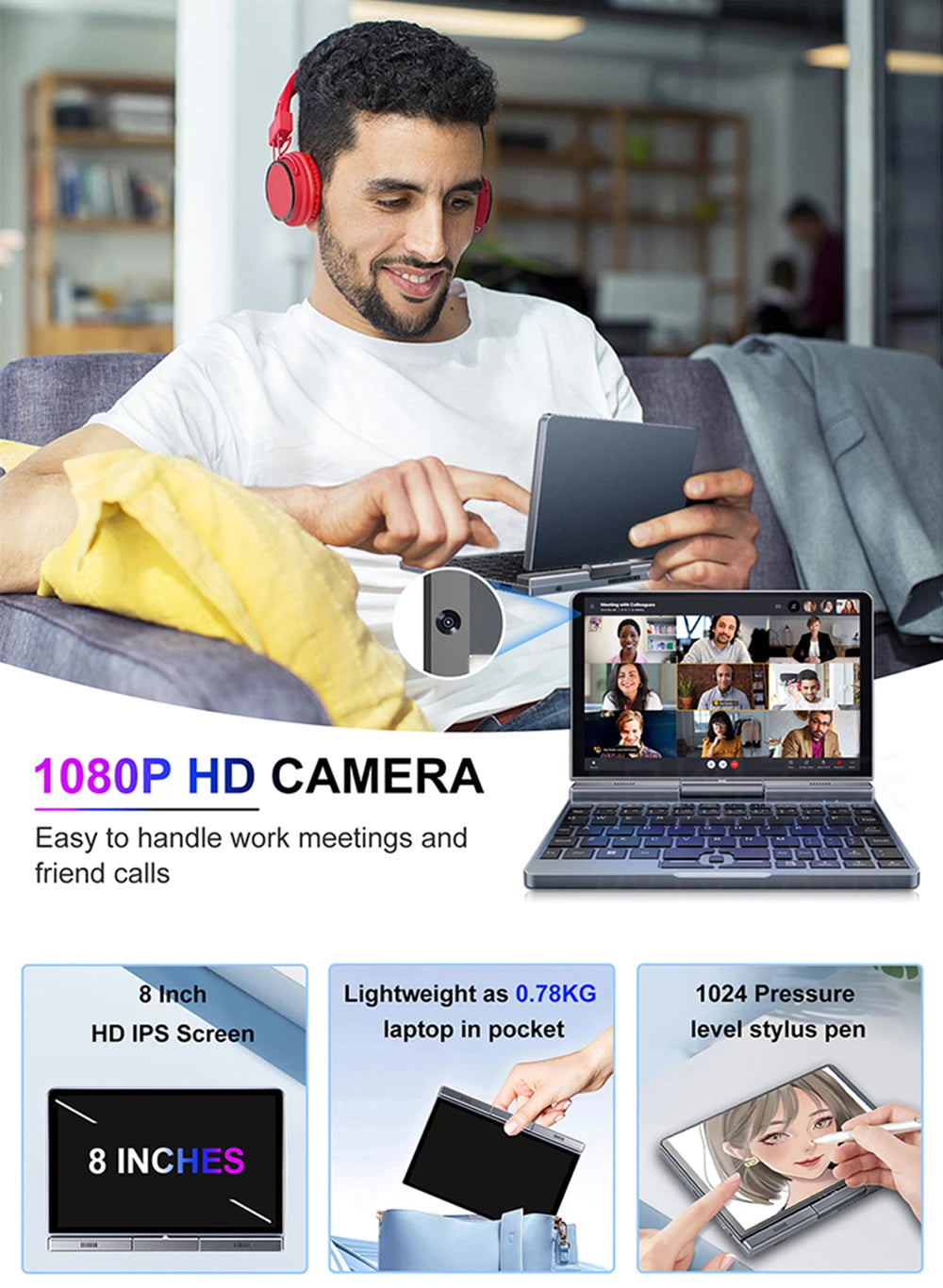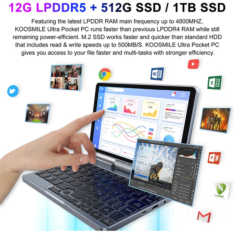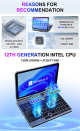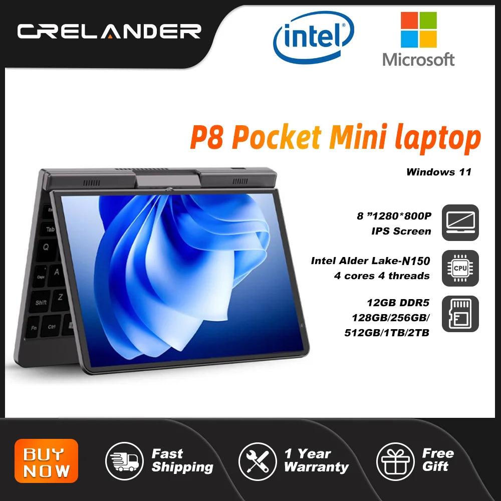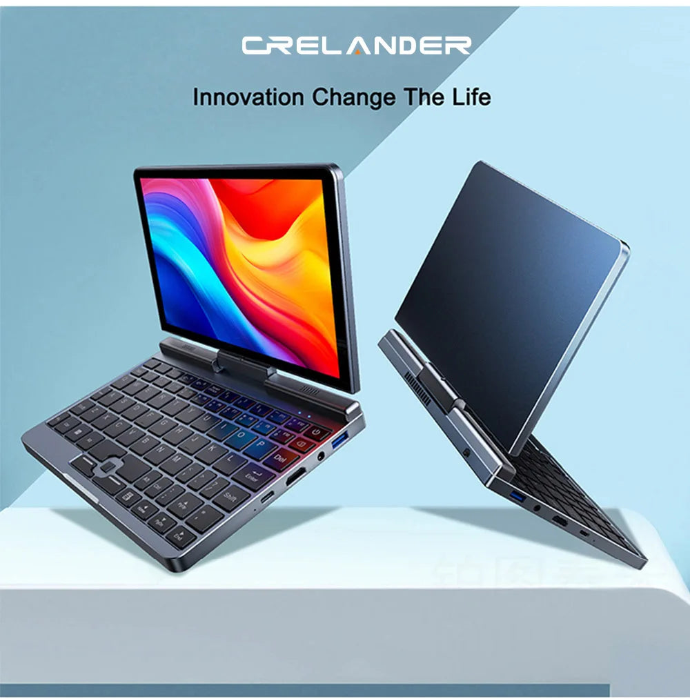 CRELANDER Mini Laptop 8 Inch Touch Screen Intel Alder Lake N150 12GB DDR5 WiFi 6 2 In 1 Laptop Notebook Tablet PC Pocket Laptop