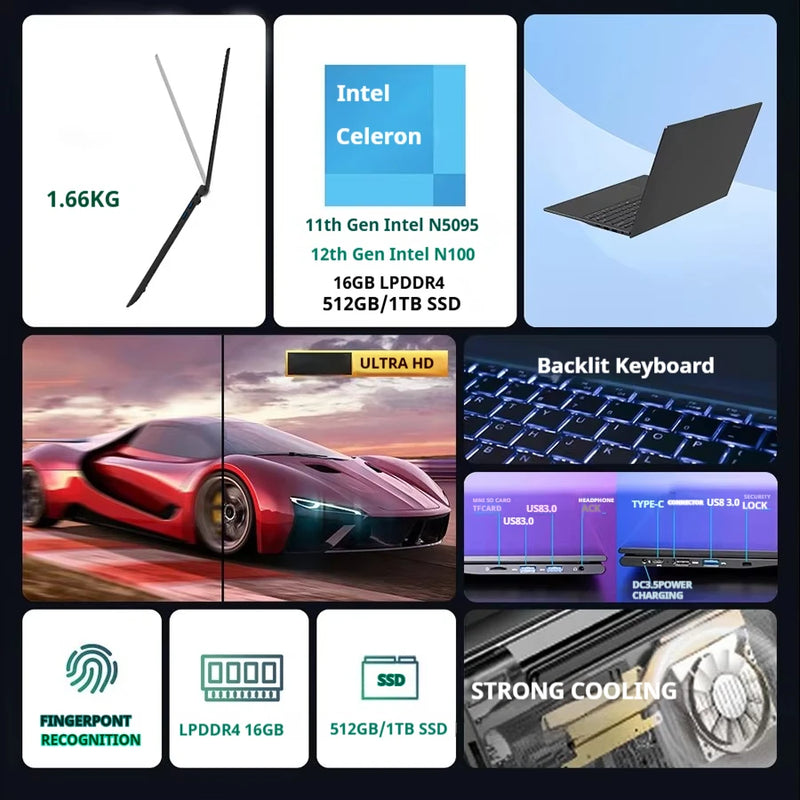 Please note: The N100/N150 models measure 15.6 inches (ingerprint recognition is not supported and the N5095 models measure 16 inches. There will be very slight differences in appearance and weight due to different production batches.