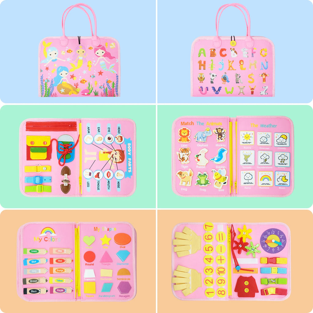 Great Gift Ideas: Unlike most other products on the market that use very common patterns, we make a great effort researching the elements that kids love, and finally created this original busy board that contains many elements that children like. Dinosaurs, whales, mermaids, sea turtles, octopus, crab and other elements that children love are only to arouse children's interest. Exquisite pattern and excellent workmanship make it a perfect gift. Surprise your kids with our amazing busy board.