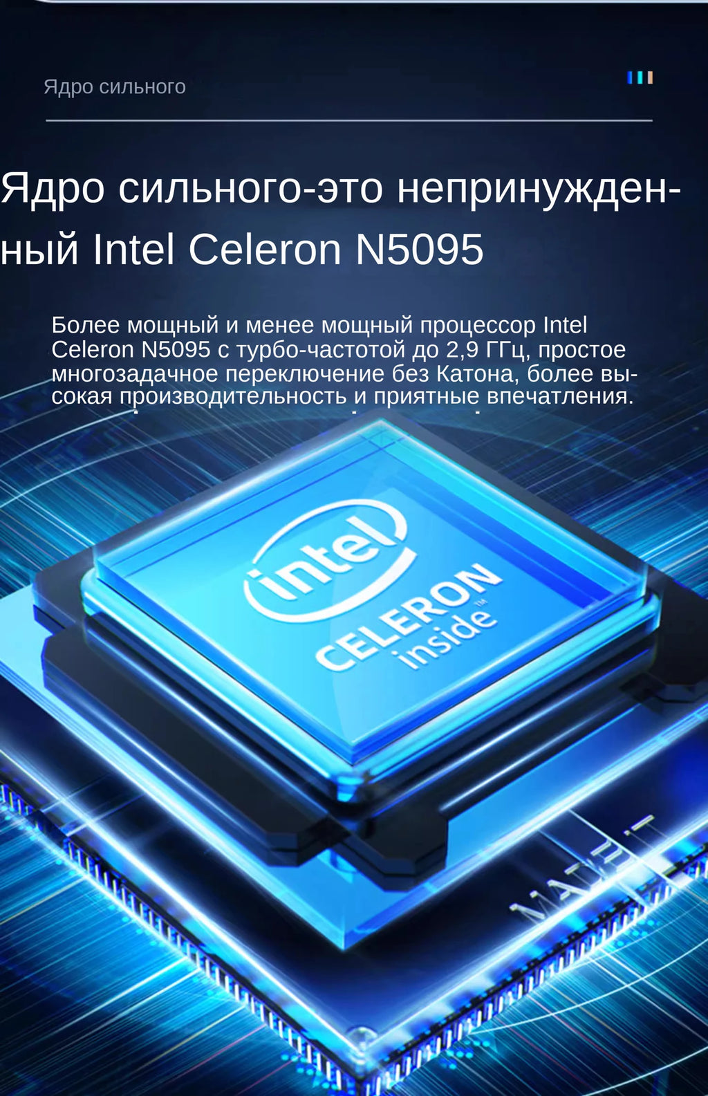 Intel Quad-Core N5095 processor and four threads, HeroBook enables up to 2.9GHz Turbo Boost speeds,Very low power consumption; the built-in HD Graphics HD500 graphics ensures faster image processing, hard-decoing 4k video.
