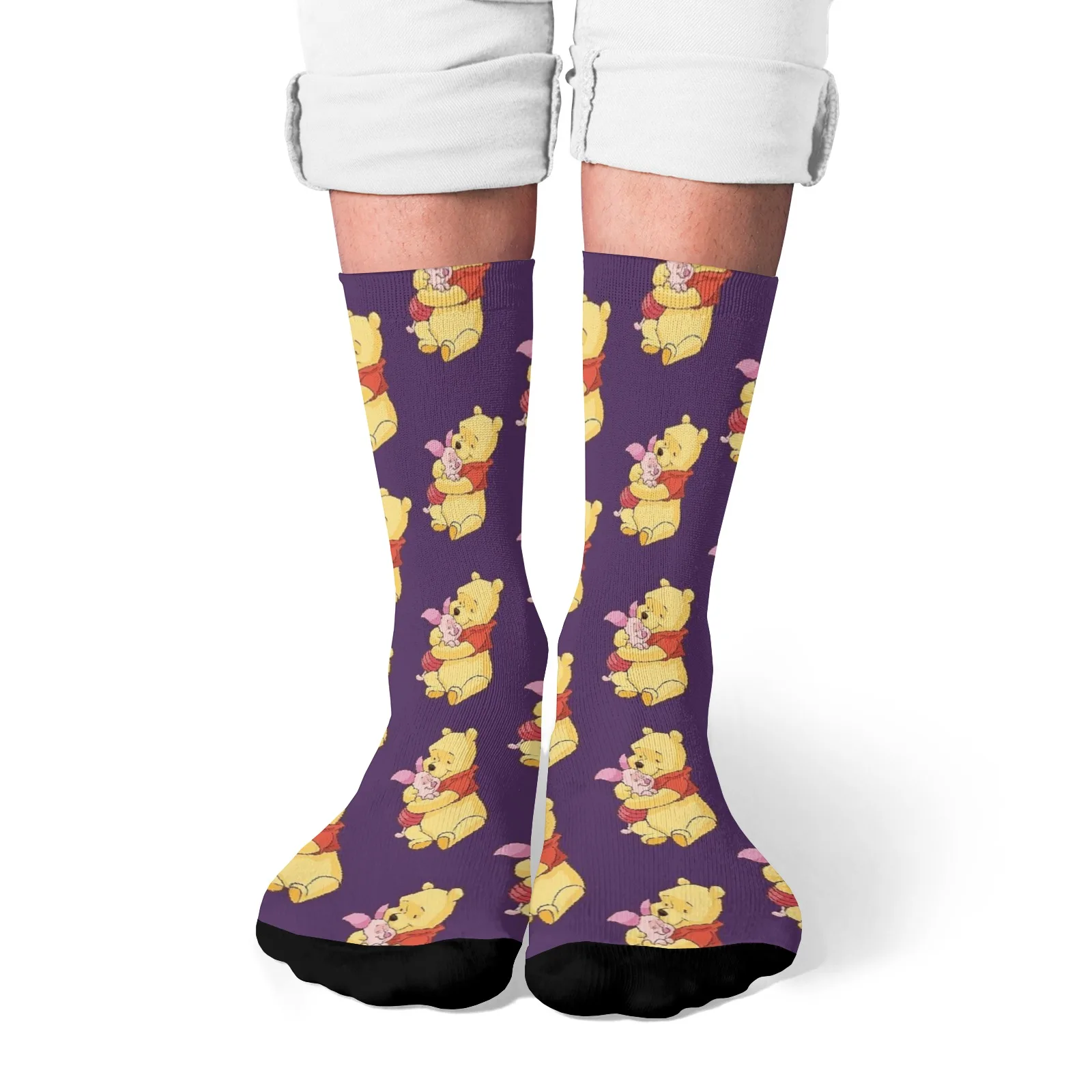 Novelty funny Winnie the Pooh print compression socks men's socks Harajuku retro soft and comfortable happy crazy party gift