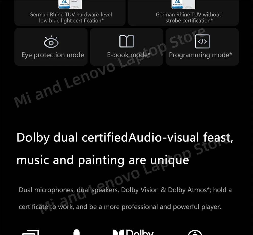 It has passed TÜV Rheinland hardware-level low blue light certification and TÜV Rheinland frequence-free