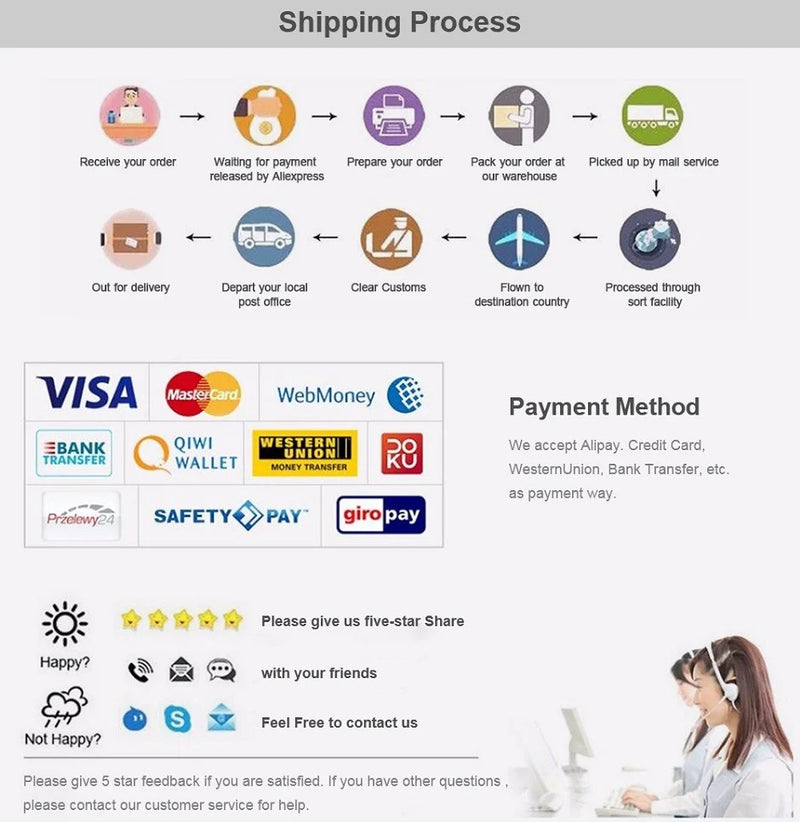 (***Please sign for the package with the local courier together, after you sign for the package, the logistics company and we default the package without any problem!!! default package has no logistics transportation/appearance/quality issues !!!!)