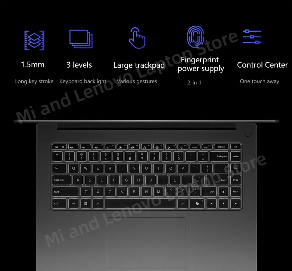Full-size keyboard, 3-position keyboard backlight, 1.5mm key travel