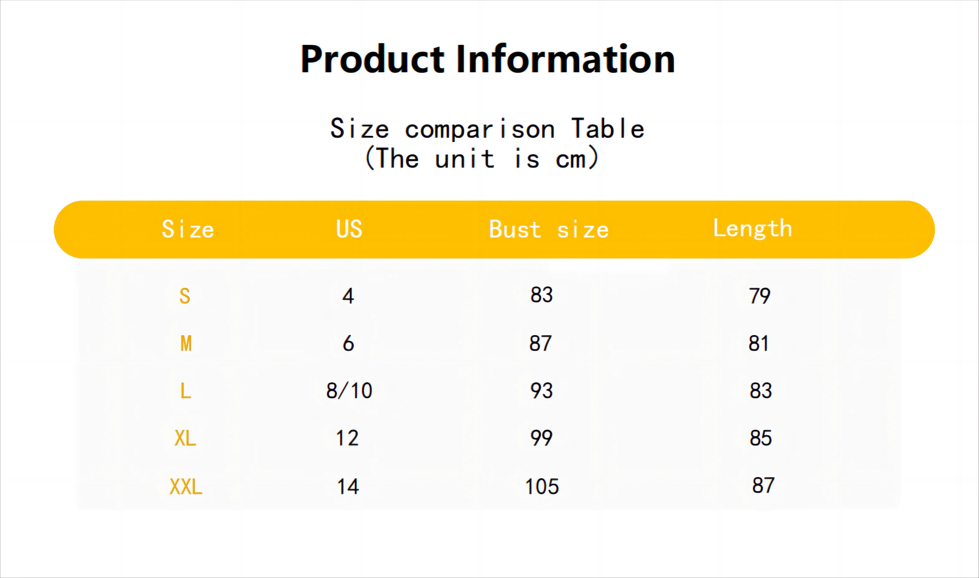 3. The following size chart is for reference only. You can choose the size according to your needs.