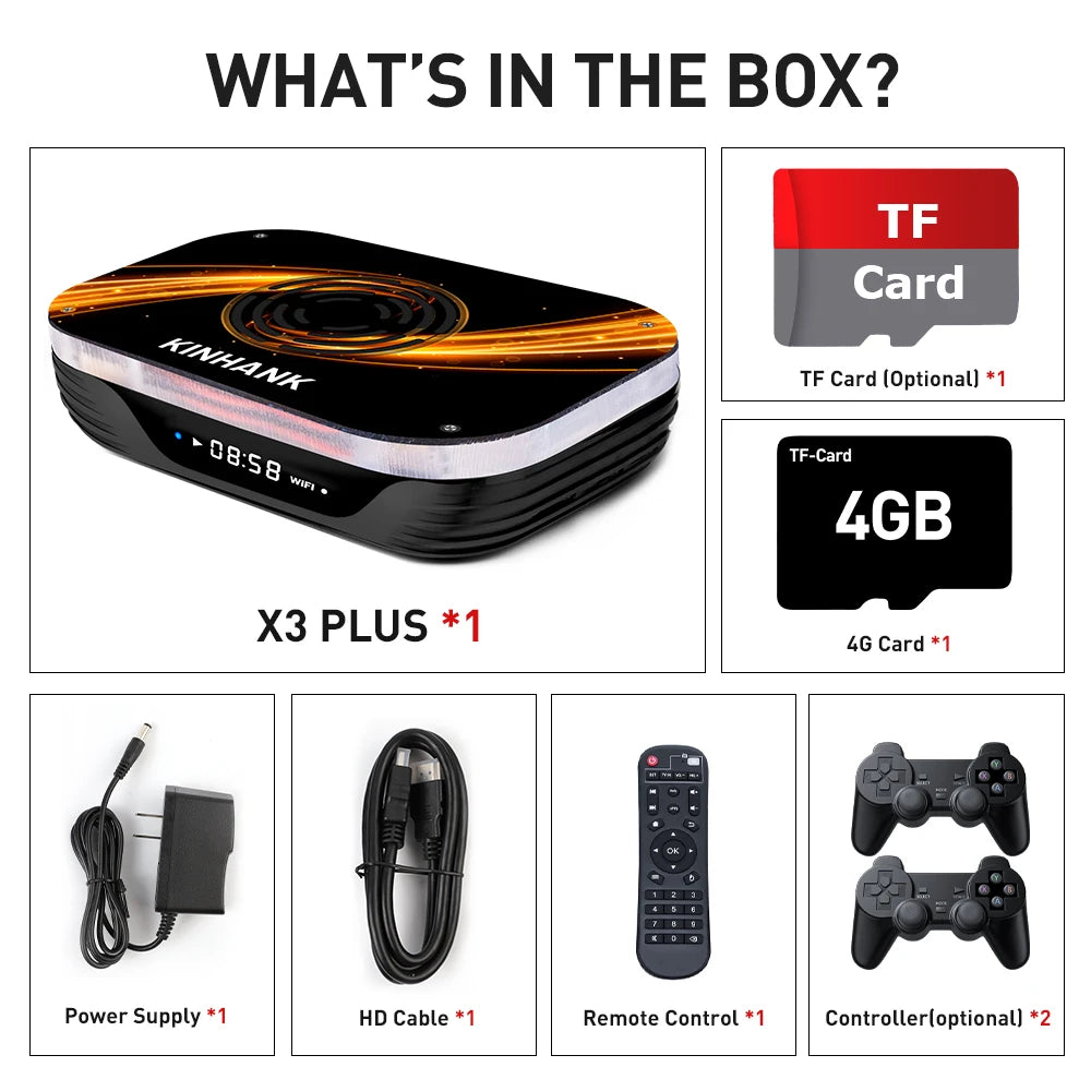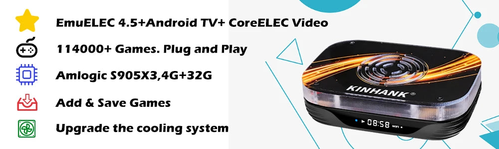 Super Console X3 Plus is the latest three-system game console + TV BOX, which integrates EmuELEC 4.5 game system, Android and CoreELEC high-definition audio and video system.