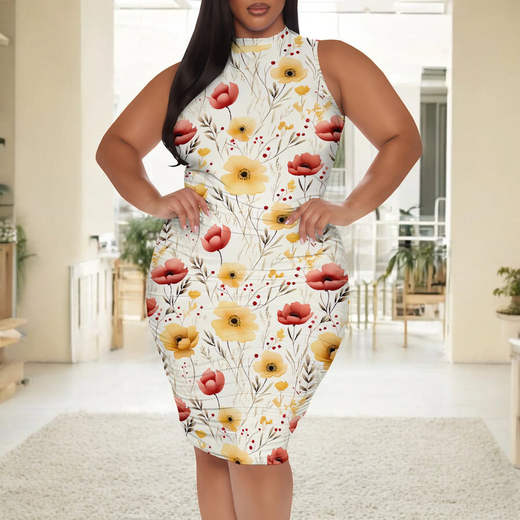 XL-6XL Plus Size Women's Elegant Floral Print Summer Bodycon Dress - Perfect for Garden Parties & Holiday Events